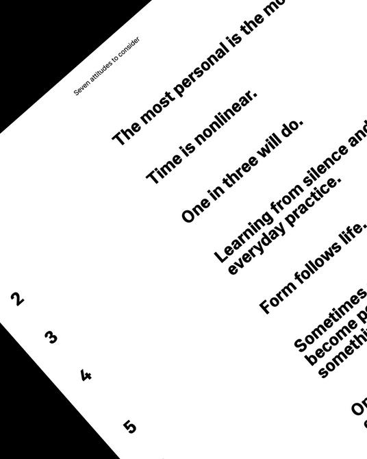 We were invited to the University of Seoul to share our evolving framework, Seven Attitudes to Consider—principles of work ethic and process we believe are important for students studying graphic design. These images capture moments from our presentation, shown from the presenter’s perspective, with its distinctive slanted TV screen.